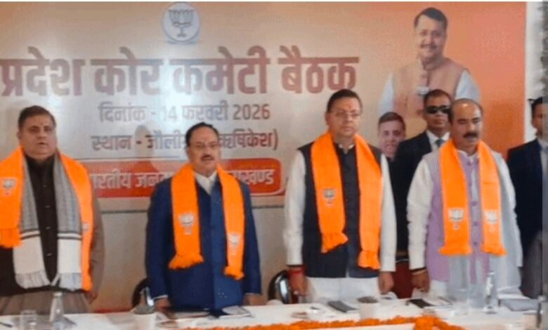 ऋषिकेश/जौलीग्रांट, उत्तराखंड में राजनैतिक हलचल तेज हो गई है, आगामी 2027 के लिए बीजेपी ने अपनी छवि और पकड़ को बनाए रखने के लिए मंथन शुरू कर दिया है कांग्रेस कई मुद्दों को लेकर जनता के बीच आवाज उठा रही है ऐसे में अंकिता भंडारी, वानभूमि बिगड़ी कानून व्यवस्था सहित अन्य कई मुद्दे विपक्ष द्वारा जनता के बीच लाए जा रहे है मंत्री मंडल के खाली पड़े पद और पार्टी संगठन में नेताओं के हित और रोष चरम पर है ऐसे में जी पी नड्डा का दौरा और बीजेपी कोर कमेटी की बैठक ने उत्तराखंड बीजेपी में नए सिरे से पत्ते फेंटने का काम शुरू हो गया है, उत्तराखंड बीजेपी के प्रभारी दुष्यंत गौतम और रेखा वर्मा की नामौजूदगी भी विपक्ष को चुटकी लेने का मौका दे गई, हालांकि कोर कमेटी की बैठक के जरिए आगामी चुनाव की रूप रेखा तैयार कर दी गई है, कई आगामी कार्यक्रम तय किए गए है जिस से बीजेपी अपनी बढ़त को राज्य में बनाए रखे, आइए नजर डालते है आज की बैठक के मुख्य बिंदुओं पर….