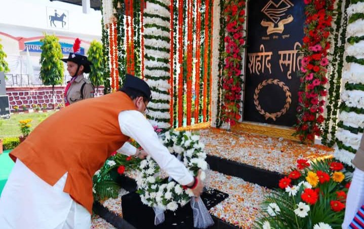 देहरादून,मुख्यमंत्री पुष्कर सिंह धामी ने मंगलवार को पुलिस लाइन्स, देहरादून में पुलिस स्मृति दिवस के अवसर पर आयोजित कार्यक्रम में प्रतिभाग किया। इस दौरान मुख्यमंत्री ने पुलिस एवं अर्द्ध सैन्य बलों के शहीदों को पुष्प चक्र अर्पित कर श्रद्धांजलि दी। मुख्यमंत्री ने शहीद पुलिस जवानों के परिजनों को भी सम्मानित किया।