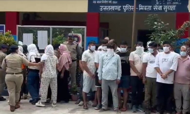 पुलिस कप्तान पौड़ी लोकेश्वर सिंह ने बताया कि थाना लक्ष्मणझूला ‘पुलिस को मुखबिर से सूचना मिली कि हरिद्वार चीला नहर के पास गंगा भोगपुर तल्ला स्थित इवाना रिजॉर्ट में बाहरी राज्यों से पहंचे युवक-युवतियां पार्टी का आयोजन कर रहे हैं। सूचना पर थानाध्यक्ष संतोष पैथवाल विशेष टीम के साथ मौके पर पहुंचे। छापेमारी के दौरान रिजॉर्ट में डीजे की तेज धुन पर पार्टी चल रही थी। जहां 28 पुरुष और 9 महिलाएं मौजूद थीं। पुलिस ने मौके से सभी को हिरासत में ले लिया।