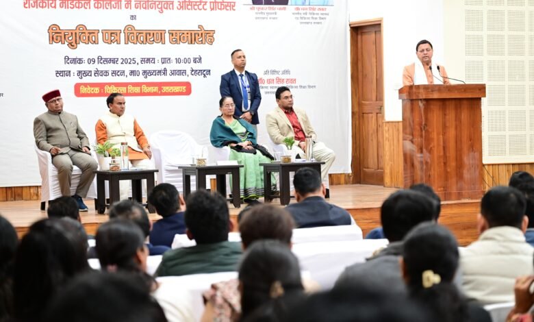 देहरादून , मुख्यमंत्री पुष्कर सिंह धामी ने मंगलवार को मुख्य सेवक सदन, मुख्यमंत्री आवास, देहरादून में आयोजित कार्यक्रम में प्रतिभाग करते हुए चिकित्सा सेवा चयन बोर्ड के माध्यम से चयनित राजकीय मेडिकल कॉलेजों में 142 असिस्टेंट प्रोफेसर्स को नियुक्ति पत्र वितरित किए।